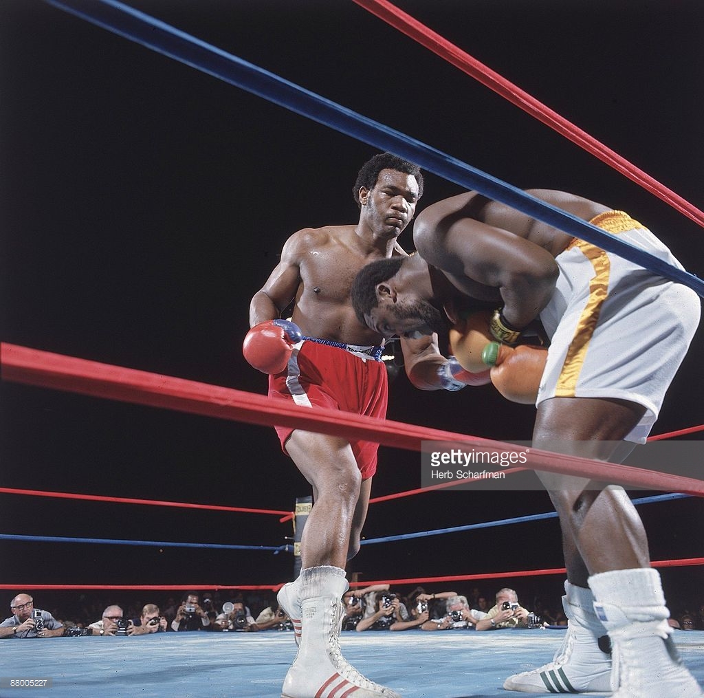 Foreman successfully finished “Smokin'” Joe in less than two rounds. Howard Cosell’s call with the ABC broadcast on the fight, “Down goes Frazier! Down goes Frazier!,” after the first knockdown from a right uppercut just past a minute into the first round was so iconic that it is still used in pop-culture references today. Frazier had no defense or answer for that canned ham sized right fist of Foreman’s. Foreman managed to knock Frazier down five times before the fight was stopped by the referee upon the sixth once Foreman cracked Frazier with another booming right that sent him crashing to the canvas.