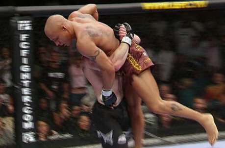 Let’s revisit that iron will of Matt Hughes. He was so determined to beat Frank Trigg again that his face was damn near purple from the choke, but he was eventually able to break free. He had a neck like concrete to be able to escape a deep chokehold like that.